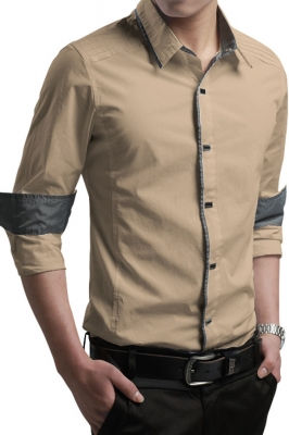 Khaki Mens Slim Fit Lapel Single-breasted Cotton J