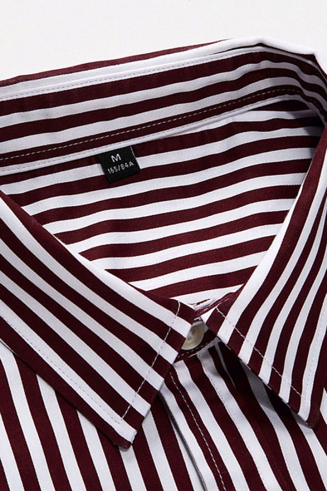 Claret White Vertical Stripes Long Sleeve Shirt